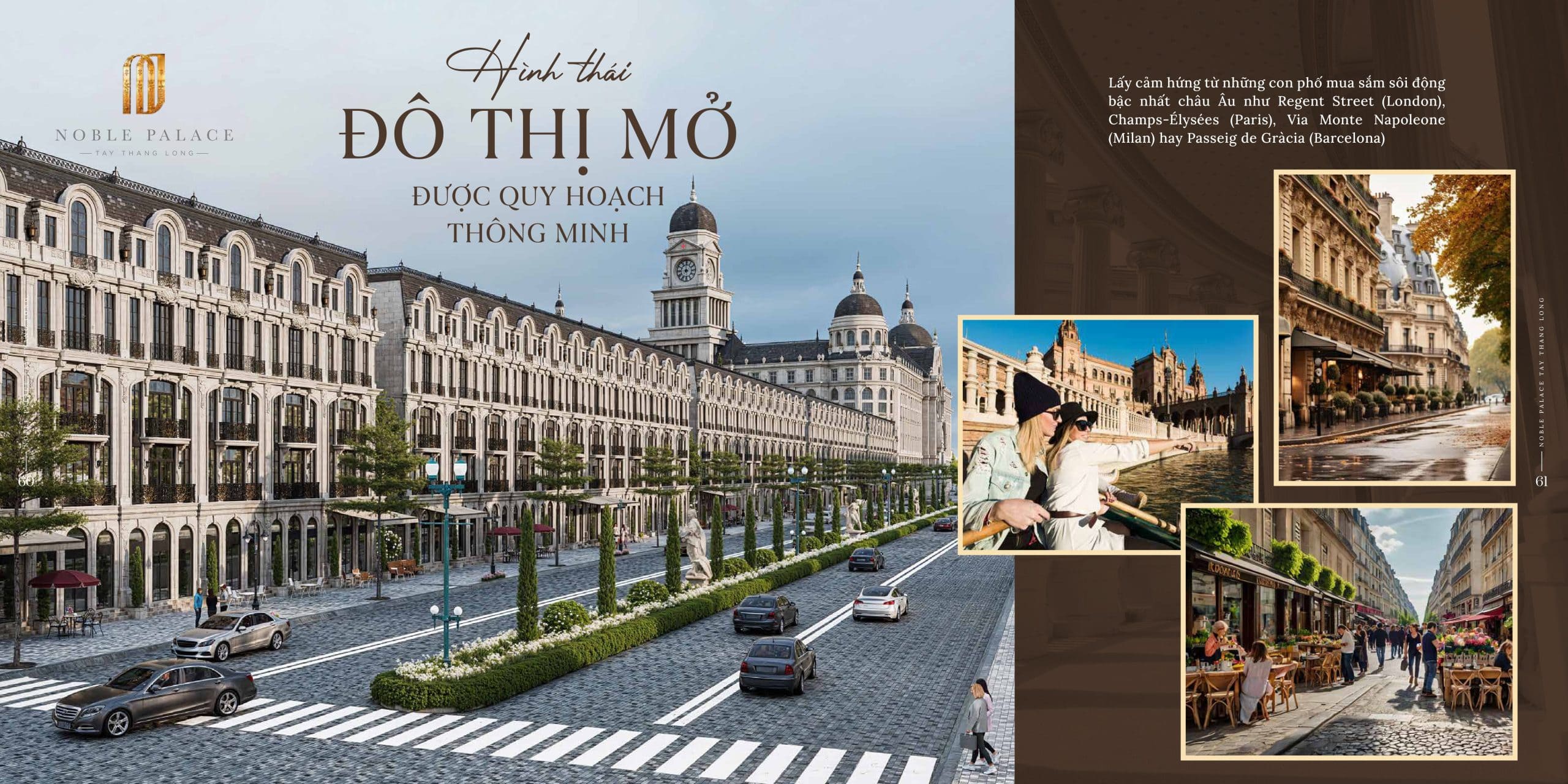 Noble Palace Tây Thăng Long Đan Phượng được lấy cảm hứng từ những Giao lộ hoàng kim của Châu Âu, nơi sở hữu những tuyến phố đi bộ, mua sắm với các thương hiệu hàng đầu.