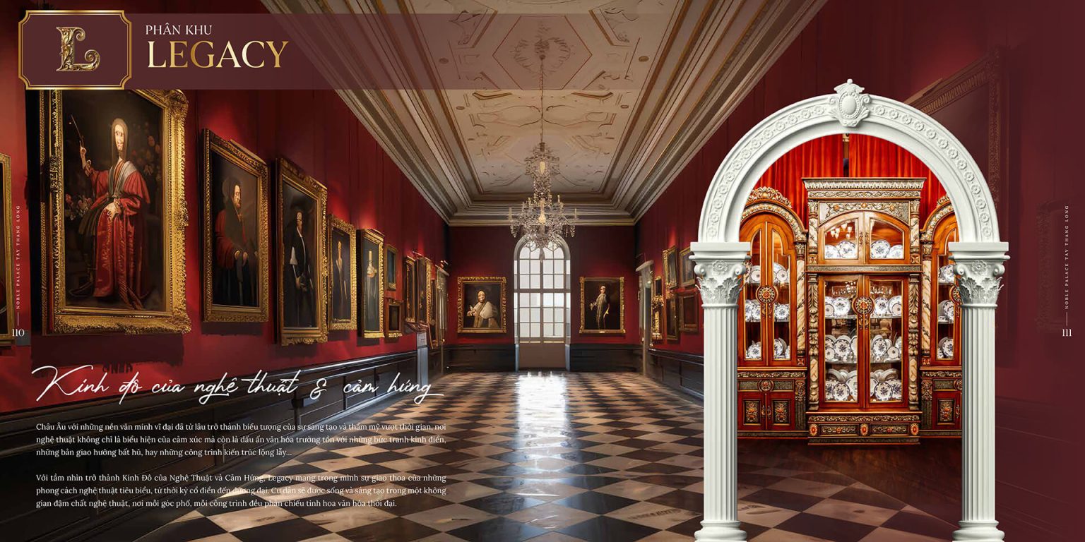 - Legacy – Kinh đô nghệ thuật: Không gian giao thoa giữa cổ điển và đương đại, tôn vinh tinh hoa nghệ thuật châu Âu, trở thành điểm hẹn sáng tạo và cảm hứng.