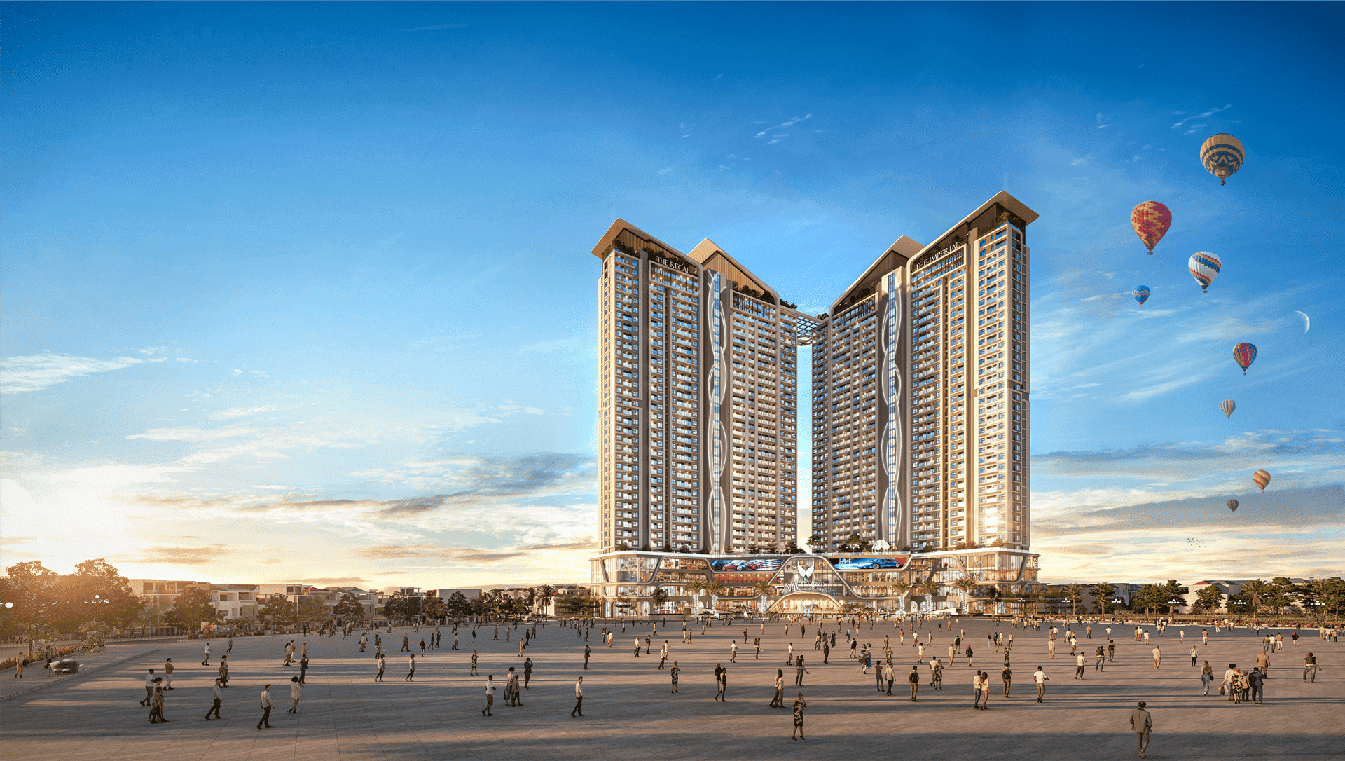 VIC GRAND SQUARE bao gồm 2 khối tháp cao cấp là The Regal và The Imperial, mỗi tháp cao 36 tầng và được trang bị 3 tầng hầm liên thông.